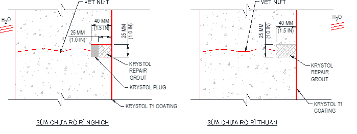 1. ỨNG DỤNG KRYSTOL PLUG ĐỂ CHẶN NƯỚC ĐANG CHẢY CHO RÃNH ĐÃ ĐƯỢC CHUẨN BỊ.