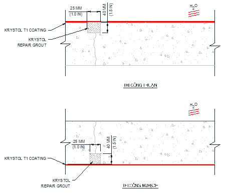 I. BỀ MẶT NGANG - BỀ MẶT KRYSTOL T1 ĐƯỢC ỨNG DỤNG CHỐNG THẤM KẾT TINH