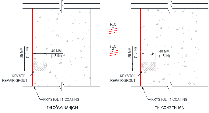II. BỀ MẶT ĐỨNG - BỀ MẶT KRYSTOL T1 ĐƯỢC ỨNG DỤNG CHỐNG THẤM KẾT TINH