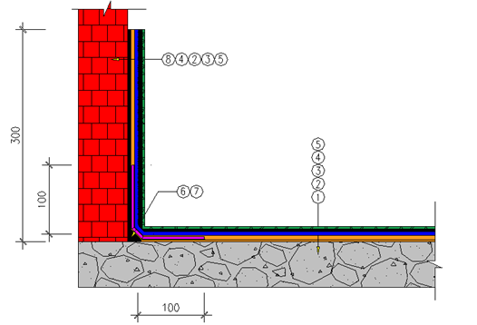 - Thi công lớp thứ nhất DuraLastic S100, định mức 1.25 kg/m2 tại các khu vực góc chân tường trước, ngay khi lớp thứ nhất còn đảm bảo độ dính, trải lớp lưới thủy tinh gia cố (áp dụng khi chân tường xây bằng gạch) và cán đều sau đó thi công các khu vực khác. Chú ý bảo vệ bề mặt cho đến khi lớp màng khô, sau đó phủ lớp thứ 2 DuraLastic S100 , định mức 1.25 kg/m2, luôn vén chân tường theo thiết kế.