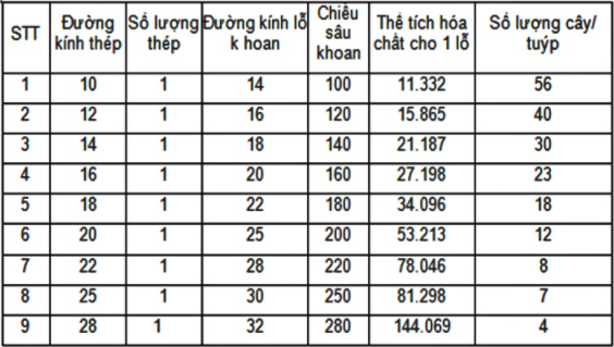 Bước 1: Khoan tạo lỗ với đường kính, chiều sâu lỗ khoan theo yêu cầu của hồ sơ kỹ thuật đã duyệt.